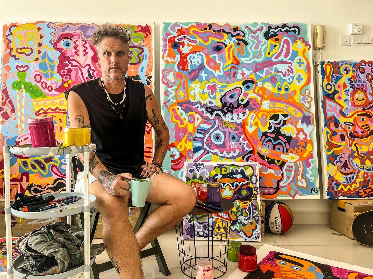 A Wollongong-born Australian artist. Nomadic by nature, with a keen interest in travel and discovery which informs his idiosyncratic style.